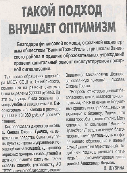 Выделены средства на ремонт пожарной сигнализации в трех школах Ванинского района на общую сумму 1 431 080 рублей.